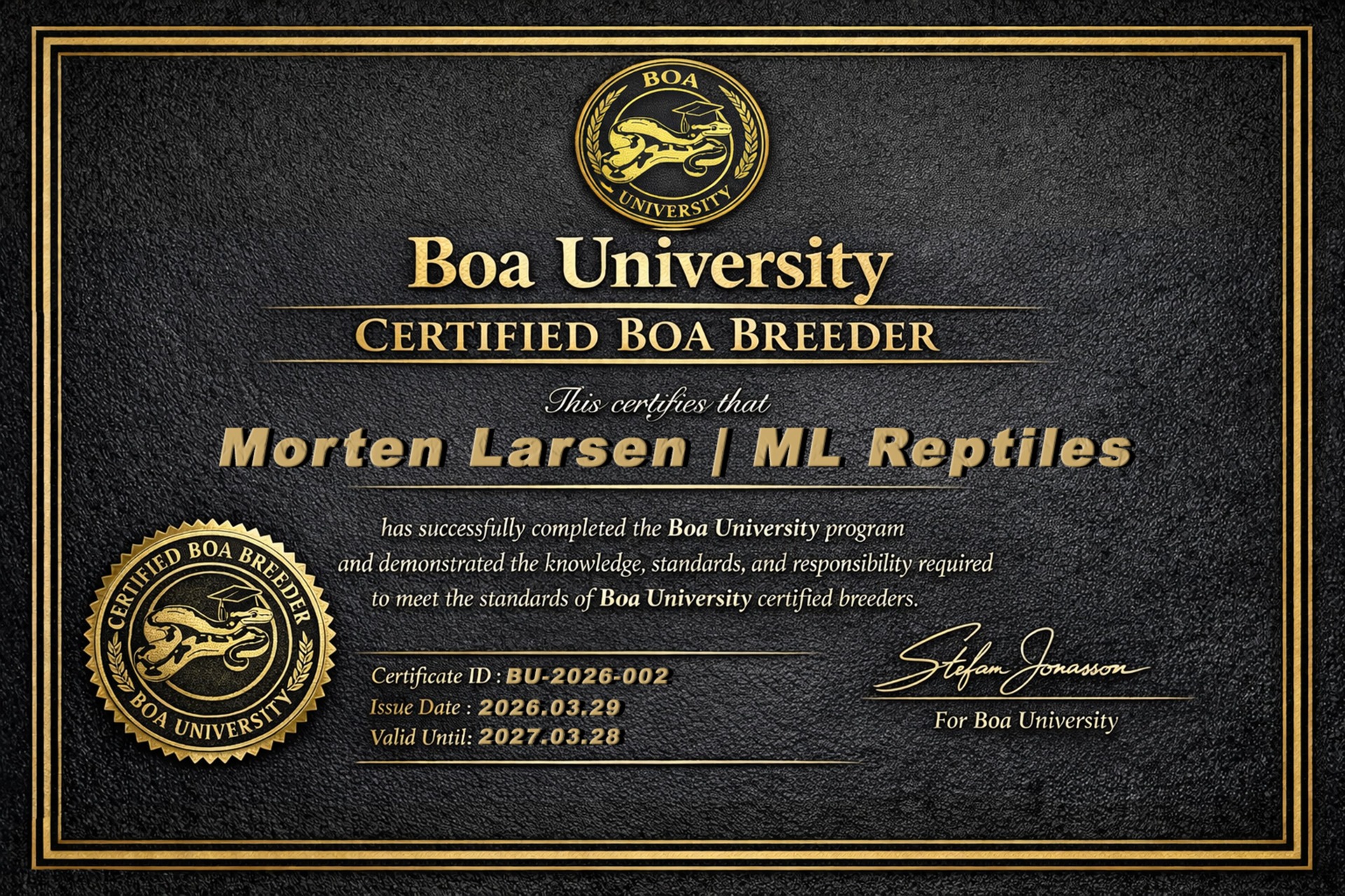 Oppdrett av reptil arter fra positivlisten, med fokus på boaerne. Kongeboa, Hagetreboa og Brasiliansk regnbueboa.
